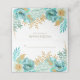 Voici une jolie carte mariage pliée qui présente une superbe image de fleurs vert menthe et blanches nichées dans des feuilles dorés. L'image est imprimée à l'avant et à l'arrière de la carte, avec plusieurs champs de texte personnalisés en or. Le dos de la carte est vert menthe solide. Cette carte correspond aux invitations de mariage floral Sparkle Stripe Gold Mint et d'autres produits mariages dans notre magasin.