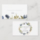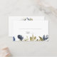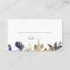 Cette carte de mariage plat et verdoyante d'automne est parfaite pour une réception mariage de automne. Le design rustique moderne présente des feuilles bleu marine, vert sauge et or avec des branches de fleurs bleu foncé. Personnalisez le dos des cartes de lieux avec les noms de la mariée et du marié et la date. Achetez en gros et écrivez à la main les noms des invités et les numéros de table sur les cartes imprimées à leur arrivée.