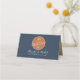 Élégante, simple, moderne, bohème, carte de table de mariage orange terracotta et bleu nuit unique avec monogramme et écriture calligraphique moderne.