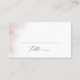 Cette carte de mariage à linge plat et moelleux à l'aquarelle est parfaite pour une réception de mariage moderne. Le design sobre et classique présente une touche d'eau rose pastel avec un style minimaliste et élégant. Personnalisez le dos des cartes de lieux avec les noms de la mariée et du marié et la date. Achetez en gros et écrivez à la main les noms des invités et les numéros de table sur les cartes imprimées à leur arrivée.
