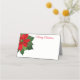 Cette carte de place pliée de nom est affichée en blanc avec une fleur de Noël rouge poinsettia. Customisez cet objet ou achetez tel quel.