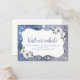 Faux armature de parties scintillant en argent brillant et bleu et "visiter notre site" script avec floral bleu et blanc poussiéreux, élégant et élégant. Grande carte d'insertion de site Web pour mariage moderne, mariage romantique, et mariage de jardin botanique. Voir toutes les pièces correspondantes de la collection