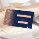 Cette élégante table mariage moderne réservée carte de place dispose d'un design rose en faux parties scintillant or le long d'un bord sur un arrière - plan bleu marine. L'avant de la carte donne de l'espace pour le nom et le numéro de table du client sous forme de rectangles rose rose. Le mot "table" apparaît dans le script d'écriture manuscrite rose rose avec des swashes avant et après. Customisez le verso de la carte avec les noms de la mariée et du marié en écriture rose et la date du mariage ci-dessous en sans serif font.