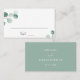Elégante carte de mariage avec un design simple avec aquarelle peinte de la verdure d'eucalyptus dans le coin supérieur gauche et le coin inférieur droit. Vous trouverez ci-dessous des lignes pour écrire le nom et le numéro de table de vos invités. Le côté arrière a vos noms et date mariage sur une teinte de vert moyen sauge correspondant. Ces cartes de mariage botanique rustique avec une touche moderne sont parfaites pour un mariage de printemps ou d'été.