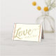 Des rayures dorées et roses et un mot d'écriture doré "love" ornent cette élégante carte de tente assise en ivoire. Une façon simple et élégante d'accueillir vos invités, pour toute occasion mariage ou spéciale.