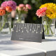 Carte de table Mariage blanc noir/carte de place/carte d'escorte avec arrière - plan de tableau noir et voyants à cordes.