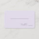 This place card features a minimalist design with a light lavender background, creating a serene and modern aesthetic. The layout includes a simple horizontal line and the word "table" in elegant cursive script, emphasizing clean lines and uncluttered space. Its understated color palette and sophisticated style make it perfect for adding a touch of grace to any event setting. Ideal for weddings or formal gatherings, this card conveys tranquility and refinement through its contemporary elegance.
