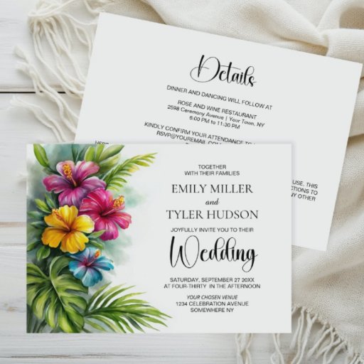 Carte De Placement Tropical Hibiscus Wedding Place Card