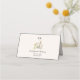 The front side displays the guest name and table assignment, helping guests easily find their seats at the reception. The back side features a delicate monogram, watercolor artwork, and wedding details including the couple's names, location, and date.