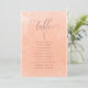 Aidez vos invités à trouver leur table avec cette élégante carte de plan d'eau couleur pêche avec les noms des invités. Cartes recto-verso pour que les clients puissent chercher leur nom à l'avant ou à l'arrière. Libérez de l'espace tout autour en vous donnant la liberté d'utiliser des clips ou un trou de perforation pour accrocher des écrans, ou d'utiliser le support/cadre de table. Pêche exquise, corail et orange poussiéreux arrière - plan et texte en pêche. Détails de calligraphie manuscrite moderne. Une partie de notre collection "Peach Watercolor Botanical Monogram Mariage" avec une variété de produits de coordination disponibles, y compris les cartes de numéro de table et les menus et plus encore. Visitez la collection entière avec ce lien : https://www.zazzle.com/collections/peach_watercolor_botanical_monogram_wedding-119201759263203074