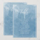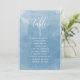 Aidez vos invités à trouver leur table avec cette élégante carte bleue d'aquarelle plan avec des noms d'invités. Cartes recto-verso pour que les clients puissent chercher leur nom à l'avant ou à l'arrière. Libérez de l'espace tout autour en vous donnant la liberté d'utiliser des clips ou un trou de perforation pour accrocher des écrans, ou d'utiliser le support/cadre de table. Exquise couleur bleu aquarelle lave arrière - plan et texte blanc. Détails de calligraphie manuscrite moderne. Une partie de notre collection "Mariage de Monogramme Botanique d'Aquarelle Bleue" avec une variété de produits de coordination disponibles, y compris les cartes de numéro de table et les menus. Visitez la collection entière avec ce lien : https://www.zazzle.com/collections/blue_watercolor_botanical_monogram_wedding-119923294821263262