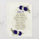 Belle carte de plan de sièges romantique avec des fleurs bleu royal et beige et quelques feuilles.