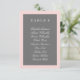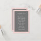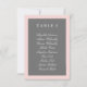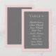 Élégantes cartes de plan de mariage minimalistes avec place pour jusqu'à dix invités en texte blanc sur fond gris avec des bordures rose blush.