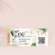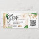 Destination Billet de passe d'embarquement de mariage de plage Ticket d'avion or Sauvegarder la date avec l'icône du bateau de croisière avec des feuilles tropicales. Ajoutez votre code QR
