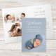 Script moderne "Welcome" 4 photo carte pliée faire-part de naissance. Cette élégante carte de faire-part pour bébé comprend une photo à cadre plein, le nom du bébé et les détails de naissance sur le devant. À l'intérieur avec 3 photos, nom et date de naissance du bébé, message "Bienvenue dans le monde" et texte faire-part pour la famille et les amis. Adresse personnalisée à l'arrière. La disposition est structurée avec peu de coeur. © y.BEE PAPERIE #ZazzleMade #photo-collageanniversairesAnnonces #babyannounce #foldednataianitcard