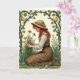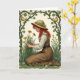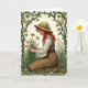 Conçue avec une scène de campagne calme et romantique, la carte représente une jeune femme agenouillée dans de l'herbe émeraude parsemée de fleurs sauvages jaune doré, son corps légèrement décentré comme si vous l'aviez surprise dans un moment intime. Ses cheveux auburn tombent librement sous un chapeau de paille orné de petites fleurs blanches et orange, et elle porte un chemisier crème avec un tablier marron qui se fond dans les tons chauds qui l'entourent. Elle regarde vers le bas avec une attention tendre et presque timide, et ses mains planent au-dessus des fleurs comme si elle les soignait avec la même tendresse que pour quelqu'un qui lui est cher 💚. Un fond crème doux maintient l'ensemble délicat, tandis qu'un cadre de vigne arqué se recourbe au-dessus avec des feuilles ressemblant au trèfle et de petites fleurs jaune-brun, ajoutant une touche de la Saint-Patrick ☘️. Tout texte de vœux trouverait naturellement sa place dans l'espace crème ouvert au-dessus d'elle, dans une couleur vert moyen qui correspond aux feuilles sans surcharger l'illustration. La lumière reste diffuse et dorée, faisant ressortir les textures du bord de son chapeau, les plis de son chemisier et l'aspect velouté de l