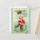 Carte postale rétro / Vintage voyage. Jolie dame tenant un parapluie assis sur un poteau dans l'eau. En bord de mer, j'étais le centre d'attraction !