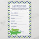 Ces cartes de prédiction de bébé Preppy Alligator super mignonnes sont une activité de Baby shower amusante qui deviendra un souvenir intemporel et faire un grand ajout à la boîte de mémoire de bébé ou le scrapbook. Passez les cartes de prédiction pendant le Baby shower où les clients s'amuseront à les remplir et à partager leurs prédictions avec d'autres! Maman peut annoncer le gagnant après la naissance du bébé. Consultez le reste de notre collection Preppy Alligator pour les articles correspondants.