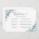 Dusty Blue Ivory Baby Shower Predictions Card. Cette invitation à la douche pour bébé élégante et élégante présente de magnifiques aquarelles peintes à la main de la couleur bleu bleu outremer. Trouvez les articles correspondants dans la collection florale d'ivoire bleu Dusty.