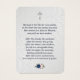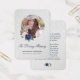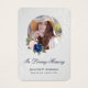 Belle carte de mémoire florale bleu et rose/carte de prière funéraire avec une photo ornée de roses bleu et rose d'aquarelle et de fleurs d'haleine de bébé contre un arrière - plan motif argenté.