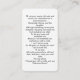 Dimensions cartes de visite : 3,5 po x 2,0 po. Cette simple carte de prière commémorative peut être donnée en souvenir lors d'une célébration de la vie ou d'un service funéraire ou envoyée en hommage spécial à ceux qui n'ont pas pu y assister. Personnalisez cette carte avec une photo préférée, le nom de votre proche, les dates et votre choix de prière ou de poème. Facile à customiser.