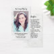 Honorer la mémoire d'un être cher avec notre élégante carte de prière commémorative, conçue pour les funérailles et les célébrations de la vie. Cette carte vous permet d'ajouter une photo chère, en créant un hommage personnalisé qui capture l'essence de votre bien-aimé. Photo personnalisable : Inclure une image préférée pour garder leur esprit proche. Design réfléchi : L'élégant arrière - plan en marbre blanc symbolise la pureté et la paix. Poème de coeur : Choisissez parmi une variété de poèmes de sympathie ou fournissez le vôtre pour express vos sentiments. Compact et pratique : dimensionné parfaitement pour une distribution facile aux services ou pour envoyer comme gardien à la famille et aux amis. Célébrez la vie et l'héritage d'un être cher avec une carte de prière magnifiquement conçue qui sert de mémoire durable et une source de confort pendant les moments de souvenir.