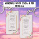 Le porte-clés de prière mémorial Floral Blush Pink est une façon touchante et belle de se souvenir et d'honorer les êtres chers qui sont partis. Ce porte-clés de prière présente un fond rose blush doux, orné de motifs floraux délicats dans des teintes douces de rose et de blanc. Les couleurs subtiles et apaisantes transmettent un sentiment de paix et de sérénité, ce qui en fait un choix approprié pour les services commémoratifs ou comme souvenir pour les amis et la famille.