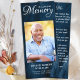 Cartes de prières funéraires en marbre bleu Premium Sympathy. Cette simple carte de prière commémorative présente un élégant design en pierre de lapis bleu. Avant "In Loving Memory" Personnalisez cette carte de prière funéraire commémorative avec vos proches photo, nom & dates, et sentiment. Retour ~ Poème 'Miss Me', qui peut être personnalisé, s'il vous plaît tendre la main si vous voulez un design avec un poème spécifique autre que. Cette carte de prière commémorative plastifiée sera un souvenir précieux, pour les services funéraires et la célébration de la vie. DROIT D'AUTEUR © 2020 Judy Burrows, Black Dog Art - Tous droits réservés. Carte de prière commémorative Signet funéraire Photo bleue