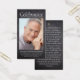 Cette carte de poème commémorative peut être remise en souvenir lors d'une célébration de la vie ou d'un service funéraire ou en hommage spécial à ceux qui n'ont pas pu y assister. Cette carte peut être personnalisée avec une photo préférée et votre choix de prière ou de poème. La photographie est à des fins d'illustration et peut être changée en une de vos propres.