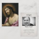 Un tableau de Guido Reni (artiste baroque italien) représentant la passion de Jésus-Christ avec une photo de prière funéraire au verso. Une belle façon d'exprimer votre gratitude envers votre famille et vos amis dans un moment difficile tout en honorant et priant pour votre proche disparu. Personnalisez avec tous vos détails personnels et préférences, y compris le texte, la police, la taille / couleur / placement de la police, le papier et le message personnel. Cette carte peut être transférée sur une carte simple. Veuillez nous demander comment et nous serons ravis de vous aider ! La photo est à des fins d'illustration uniquement et sera remplacée. Merci !