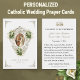 Présentant une belle image catholique traditionnelle de Marie et Joseph en fiançailles avec les cœurs de Jésus, Marie et Joseph en or au dos. Une prière est également au dos pour les mariés. Tout le texte et les polices peuvent être modifiés.