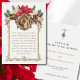 Présentant une belle image catholique traditionnelle de l'image des fiançailles de Marie et Joseph superposée sur un cadre orné doré avec des poinsettias rouges avec une belle prière pour le couple de mariés. Tout le texte et les polices peuvent être modifiés.