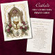 Elégante tenue religieuse avec un chalet doré avec le Christogramme IHS centré sur une arcade de cathédrale gothique. Détails complexes : Belles compositions florales aux roses bordeaux et blanches Effet de vitrine en verre tendu aux teintes pastel d'inspiration Vintage aquarelle style d'illustration Thème de communion adapté aux garçons et aux filles Parfait comme cadeau de souvenir ou invitation