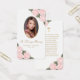 Elégante carte de mémoire florale rose et or/carte de prière funéraire avec une photo ornée de roses d'aquarelle rose vif et de fleurs d'haleine de bébé sur un arrière - plan blanc clair.