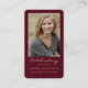 Cette simple carte de prière commémorative peut être donnée en souvenir lors d'une célébration de la vie ou d'un service funéraire ou envoyée en hommage spécial à ceux qui n'ont pas pu y assister. Le design présente une élégante typographie en or sur un arrière - plan bordeaux chaleureux. Personnalisez cette carte avec une photo préférée et votre choix de prière ou de poème au dos de la carte. Facile à customiser.