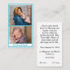 Le design avant offre un espace pouvant accueillir jusqu'à deux photos. L'image du haut de la Vierge Marie bénite peut être laissée telle quelle ou remplacée. Le nom de l'enfant est affiché en bas en bleu. Tout le design est encadré en bleu. Une bande blanche est présentée en bleu sur le nom de l'enfant porteur avant. Reverse propose une prière personnalisable pour votre bébé avec la date de naissance et les statistiques affichées ci-dessous. Idéal pour distribuer à des amis et à la famille pour annoncer la naissance du bébé. Également disponible en rose.