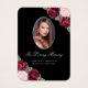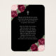 Elégante carte de mémoire florale noir et argent/carte de prière funéraire avec une photo ornée de roses d'aquarelle rose et bordeaux et de fleurs d'haleine de bébé sur un arrière - plan noir clair.