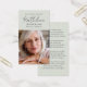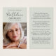 Cette carte de prière commémorative peut être remise en souvenir lors d'une célébration de la vie ou d'un service funéraire ou en hommage spécial à ceux qui n'ont pas pu y assister. Cette carte peut être personnalisée avec une photo préférée et votre choix de prière ou de poème.