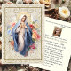 Souvenez-vous de vos proches dans la prière avec cette belle image religieuse catholique de la Bienheureuse Vierge Marie, recouverte d'un motif rose fleuri. Tout le texte et les polices peuvent être modifiés.