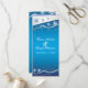 Carte de cérémonie de mariage hivernal à flocons de neige gris argenté, blanc et bleu, avec une bande ondulée gris argenté avec des étoiles et des flocons de neige bleus élégants sur un fond bleu ciel dégradé lumineux. Moderne et contemporain tout en étant adapté à un mariage traditionnel. Ce design élégant, classe et stylé peut être utilisé pour d'autres occasions spéciales telles que des fiançailles ou des anniversaires. Un choix parfait pour les mariages d'hiver, de décembre ou de Noël.