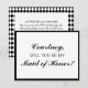 Élégante et intemporelle, cette carte de demande de témoin de mariage à carreaux noirs et blancs est le moyen idéal de demander à votre meilleure amie ou à un membre de votre famille de vous soutenir le jour de votre mariage. Avec un motif à carreaux noir et blanc audacieux au dos et une typographie classique et sophistiquée sur le devant, cette carte trouve le juste équilibre entre style moderne et sentiment sincère.