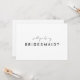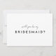 Présentant notre carte de proposition White Modern Script Bridesmaid, où le minimalisme moderne rencontre l'art de la calligraphie. Cette esthétique soignée apporte un air de sophistication à votre journée spéciale - avec une touche de boho, charme décontracté. La combinaison d'une simple typographie avec une police de script élégante ajoute une personnalité unique à votre mariage. Ce design classique offre un look intemporel et poli, parfait pour les mariages de printemps, d'été, d'automne ou d'hiver. Une palette simple et sobre de noir et blanc crée un cadre neutre parfait pour votre célébration. Faites de votre mariage une véritable élégance grâce à notre belle collection Modern Script. Comme pour tous nos designs, si vous avez des questions ou des demandes spéciales, n'hésitez pas à demander.
