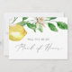 Cette carte d'honneur moderne au jardin de citron est parfaite pour un mariage de printemps ou d'été. Le design méditerranéen rustique présente de beaux citrons aquarellés aux fleurs blanches bohème et d'élégants feuilles verts. Customisez la carte avec le nom de la mariée et la bonne d'honneur. Personnalisez le dos de la carte avec un message personnalisé.