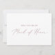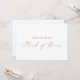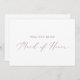 Cette carte d'honneur en or rose délicate est parfaite pour un mariage moderne. Le design minimaliste romantique présente une belle et élégante typographie rose vif et poussiéreuse rose sur un arrière - plan blanc au look épuré et sobre. Customisez la carte avec le nom de la mariée et la bonne d'honneur. Personnalisez le dos de la carte avec un message personnalisé.