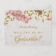 Cette élégante carte postale de demande de parrainage "Veux-tu être ma marraine ?" présente un fond marbré et des orchidées roses et blanches sur sa bordure supérieure.