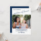 Carte de proposition mariage personnalisée pour vous matron d'honneur avec votre propre photo personnalisée et thème bleu foncé et blanc. Le modèle photo est configuré pour que vous puissiez ajouter votre propre image à l'avant. Le libellé dit : "[nom de la femme de ménage], s'il vous plaît, soyez mon chef d'honneur" et "[nom du marié et je me marie, alors la question suivante est : serez-vous mon chef d'honneur? [marque et nom de la mariée]". Tous les termes sont modifiables, sauf la première instance de "matron d'honneur" qui est écrit dans un élégant script manuscrit. La typographie et les couleurs arrière - plans peuvent être changées - veuillez cliquer sur customiser plus loin - ou envoyer un message d'assistance.