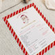 Ce questionnaire Père Noël secret présente des rayures de sucre de canne rouge et blanc festives et une police dorée élégante. Cette activité Père Noël secrète est parfaite pour une fête en famille, entre amis ou en bureau.