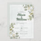 Invitation de mariage avec un design vert élégant et moderne. Dans l'esprit de la beauté intemporelle de la nature, notre invitation est ornée de la touche fraîche et parfumée des feuilles d'eucalyptus, symbolisant la force et la résilience que l'amour apporte à la vie.