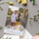 Belle et unique carte de rappel de date avec une superposition de gaze et une découpe pour laisser apparaître votre photo dans un joli script tourbillonnant. Ajoutez une autre photo au verso ainsi que les détails de votre mariage.