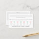Gardez vos patients organisés et souriants avec cette carte de rendez-vous dentaire moderne avec des icônes de dents propres dans les tons alternatifs rose et vert pour représenter chaque jour de la semaine. Il vous suffit de tourner autour ou de vérifier la dent correspondant au jour prévu, et d'ajouter la date et l'heure du rendez-vous pour un rappel clair et facile à lire. Le design Arrière - plan est gris clair et blanc pour un look élégant et professionnel, tandis que les pops ludiques de couleur ajoutent une touche fraîche et accessible. Texte en gris foncé. Le dos de la carte comprend une section dédiée aux notes, parfaite pour écrire des rappels sur la prochaine visite dentaire du patient. Le côté arrière comprend également le nom de votre cabinet dentaire et le numéro de téléphone pour une référence rapide. À la fois fonctionnelle et élégante, cette carte de rendez-vous est un outil professionnel conçu pour les dentistes, les orthodontistes, les cabinets dentaires pédiatriques, les hygiénistes, etc., qui veulent rendre la communication avec le patient moderne, mémorable et efficace.